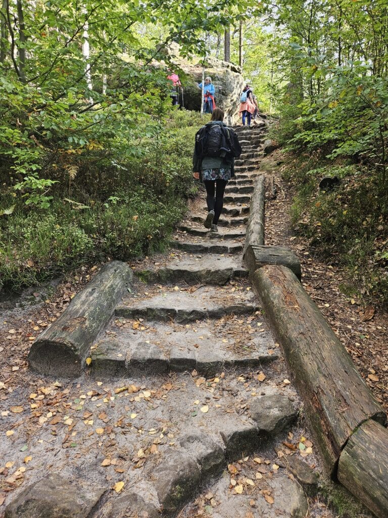 Po zaparkování se vydejte po červené turistické značce, okolo bývalé dětské ozdravovny Jetřichovice (velká budova po vaší pravé ruce). Odteď budete šlapat nahoru po cestičce, kterou budou střídat schody.