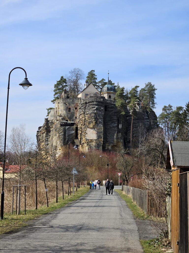 Jakmile sestoupíte dolů, na rozcestníku Pod liščí dírou se dejte doleva, po modré až do vesničky, kde vás modrá barva dovede až k hradu.